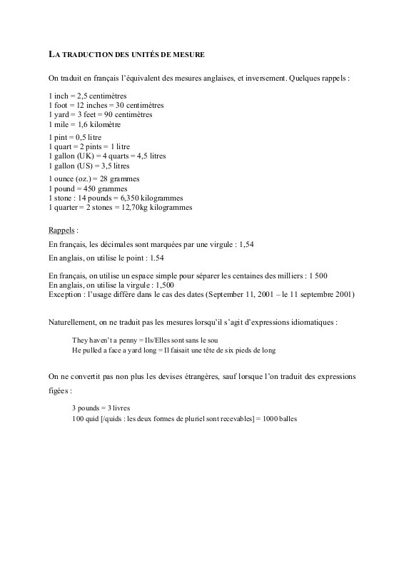 Aide sur les unités de mesure entre le français et l'anglais