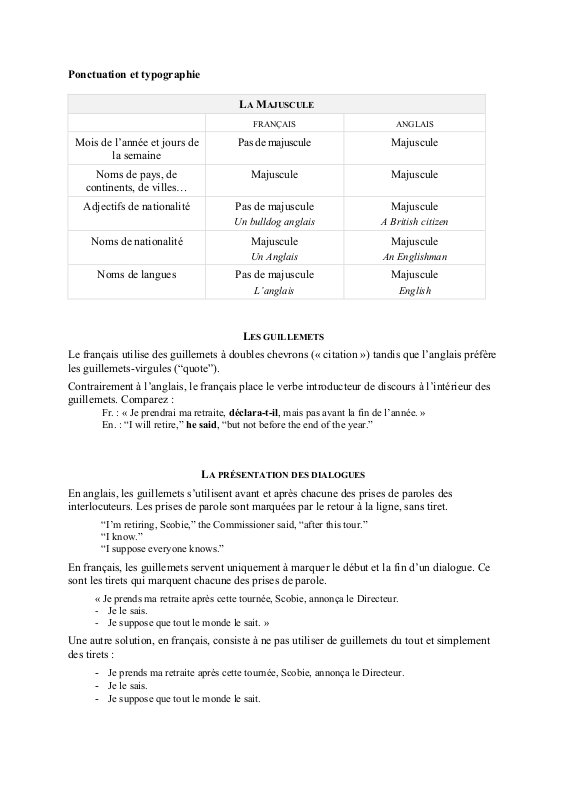Ponctuation Et Typographie entre le fançais et l'anglais